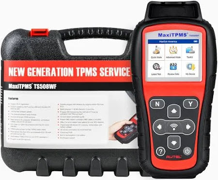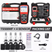 The Autel MaxiTPMS TS508WF is an advanced TPMS tool for diagnosing and servicing tire pressure systems. It activates all known sensors, reads data (ID, pressure, temperature, battery), checks system health, and programs Autel MX-Sensors. It also performs complete TPMS relearn procedures.