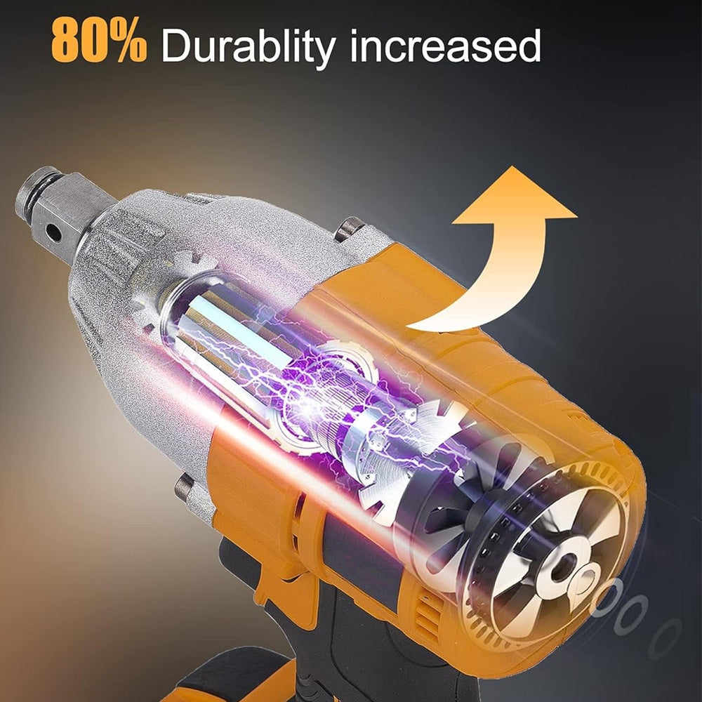 - 🔧Top Rated Brushless Impact Wrench: brushless impact wrench produces less heat during long-time working, no spark. It means efficiency increased 40%, durable increased 80%.
