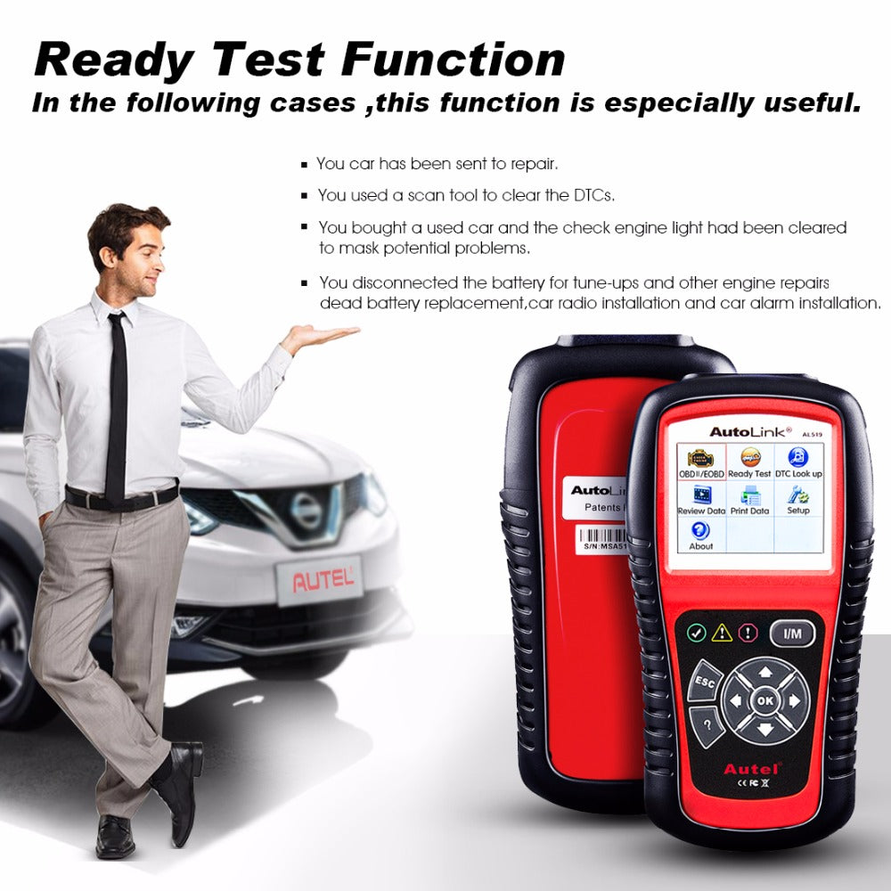 Autel MaxiLink ML329, with its patented One-Click I/M Readiness Key, enables user to check State...