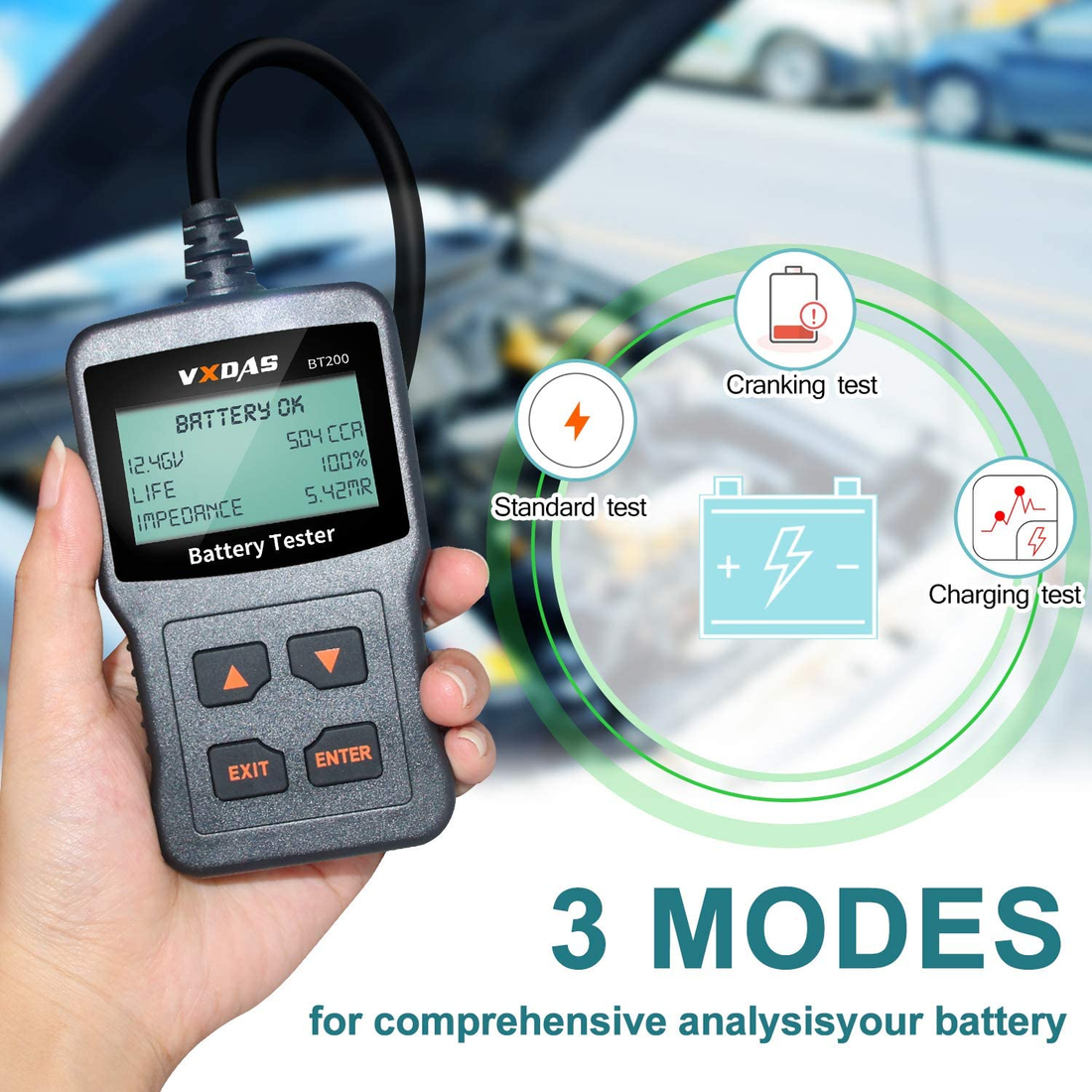 VXDAS BT200 Car Battery Tester 12V 100-1700CCA 30-100AH Automotive Bad Cell Test Tool No Need Battery Knowledge