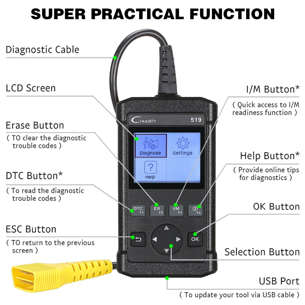 Creader 5001 provides full OBDII/EOBD diagnostic functions and meets protocols such as ISO9141-2, ISO14230-4, SAEJ1850, and...