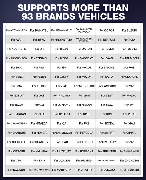 THINKCAR ThinkTool Pro Supports Car List :