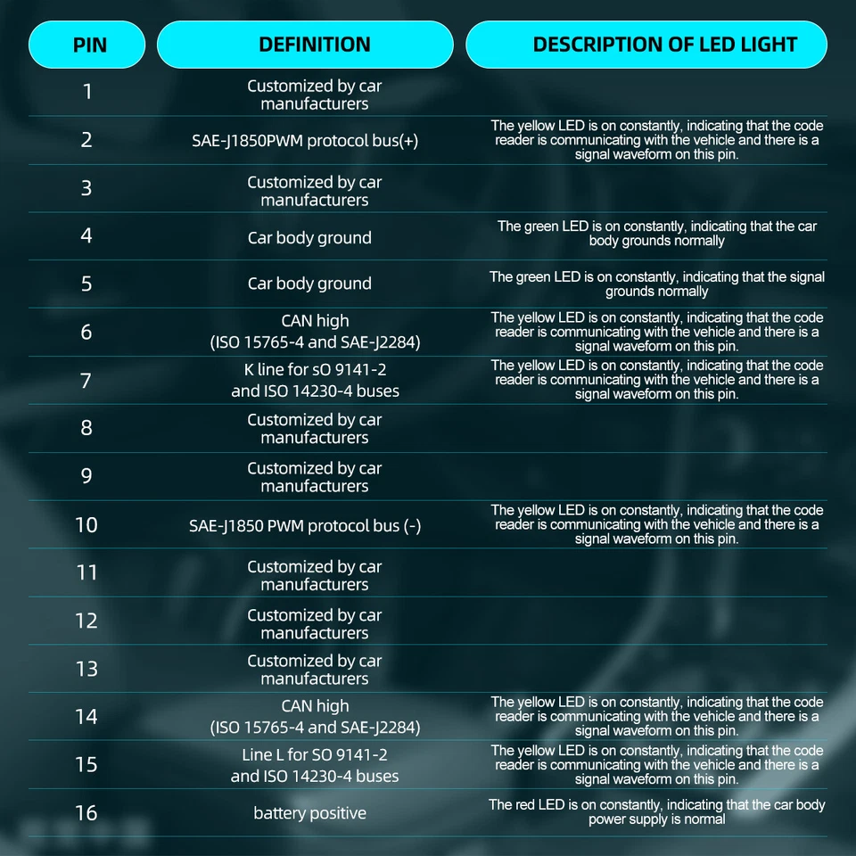 2. Easily access each of the 16 pins while the scan tool communicating with vehicle.