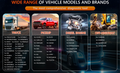 - Pickups: Ford, Chevrolet, Dodge, Toyota, Kia, Mazda, GMC