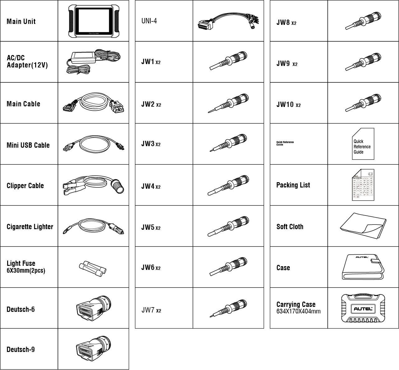 Autel Maxisys CV Package List (Australian Version):