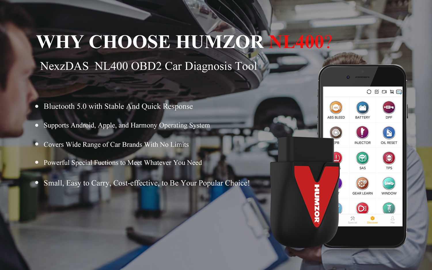 Humzor nl400 car obd2 fault diagnostic tool scanner app immo reset & odometer manager & key programming pk thinkdiag ap200