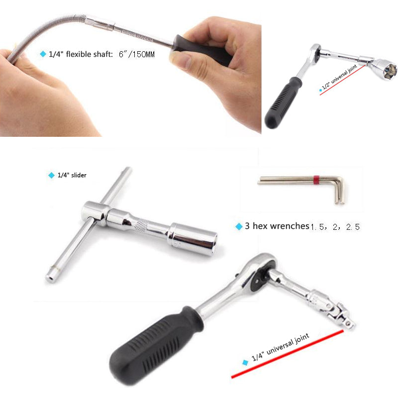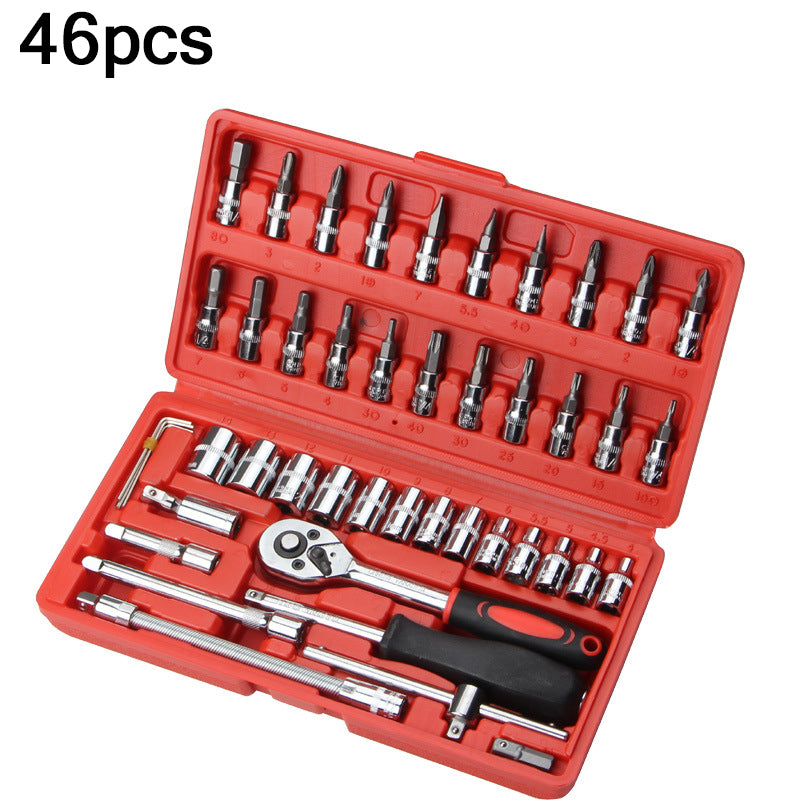 46pcs Ratchet Wrench Set Auto Repair Kit 1/4'' Socket Wrench Box Spanner Auto Maintenance Tool