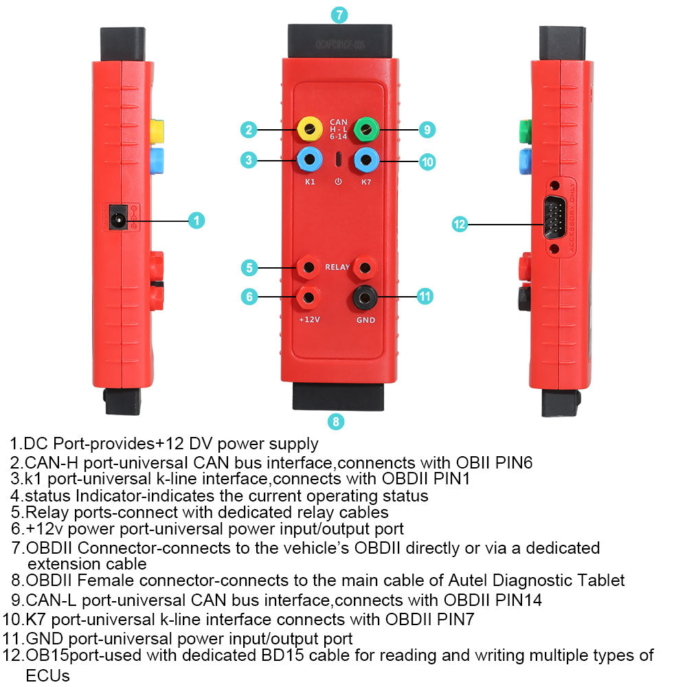 OB15 Port:                           Used with dedicated BD15 cable for reading and writing multiple types of ECUs