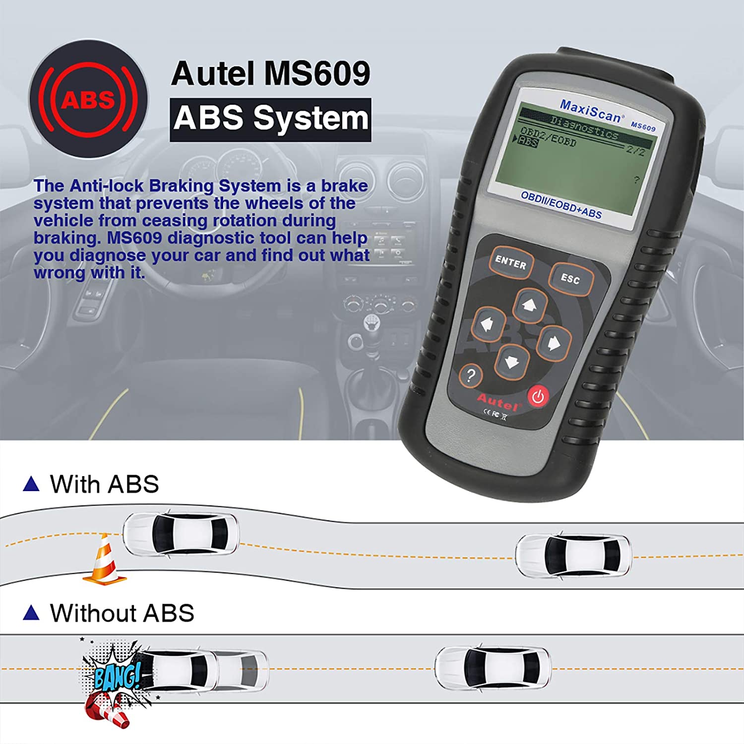 Compared with MS509 & AL519, Maxiscan MS609 offers the same features and functions as the MS509, also it comes with additional benefits of ABS testing and DTC tips which help users determine why the Check Engine Light or the ABS warning light is on.