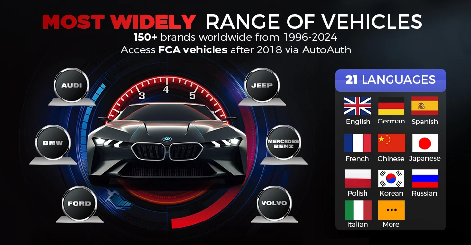 • Support for 150+ Global Vehicle Brands (1996-2023): Covers 10,000+ models from American, European, and Asian manufacturers.