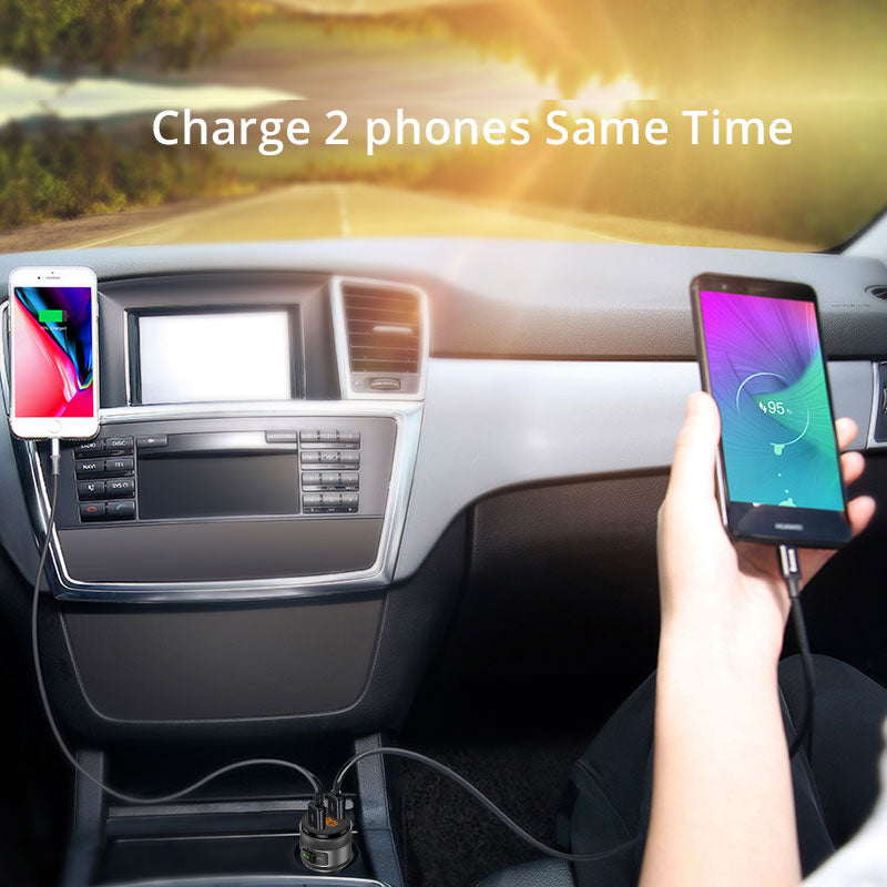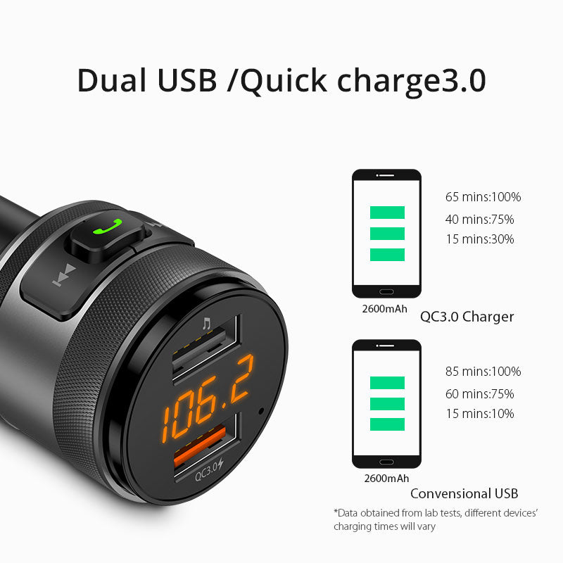 C57 Quick charge 3.0 Car Bluetooth FM Transmitter Dual USB Ports Car Charger FM Modulator MP3 Player Car Lighter Handsfree - VXDAS Official Store