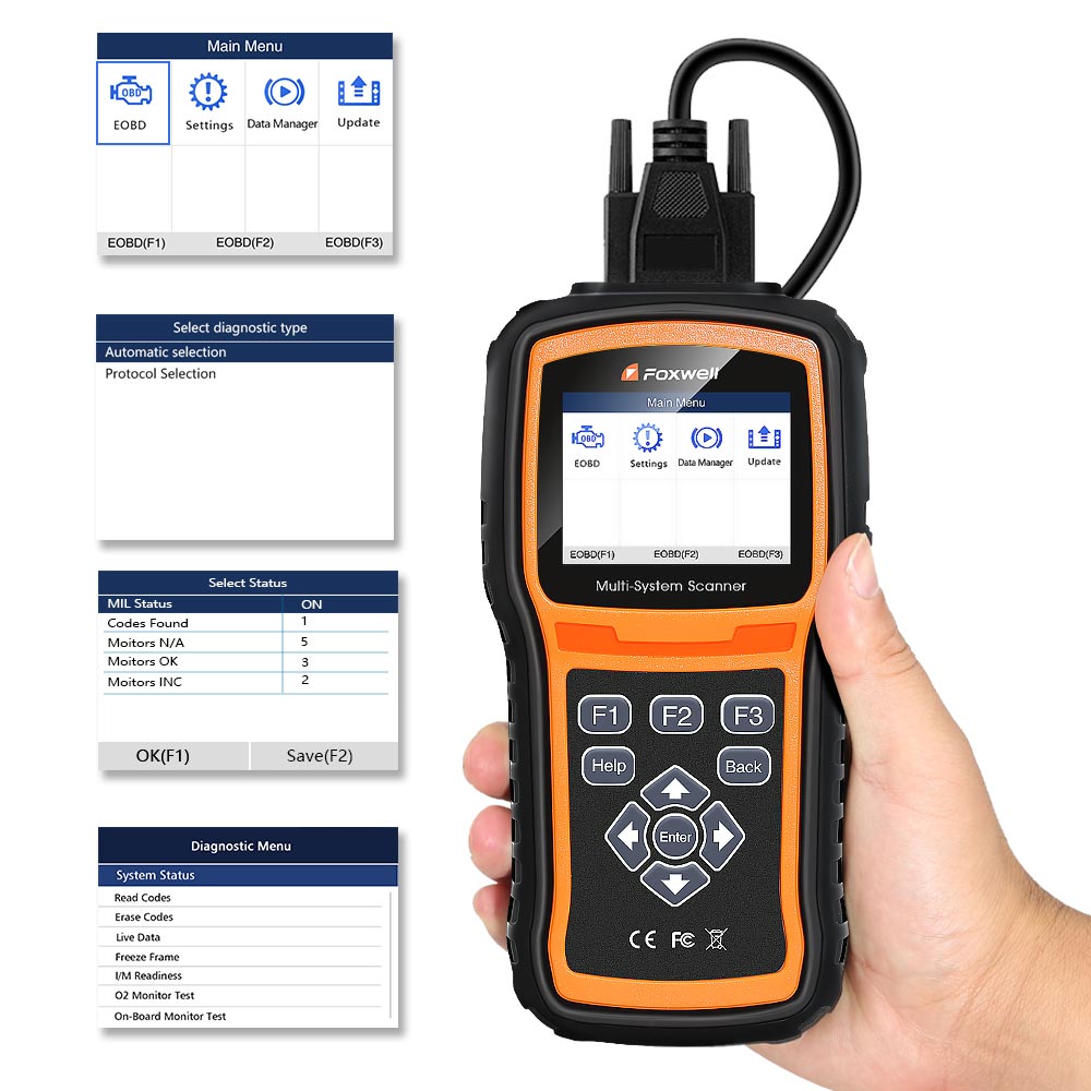 Foxwell NT530 has access to trouble codes,freeze data and live sensor data of powertrain,chassis and body systems(ABS,airbags,instrument cluster,etc.)