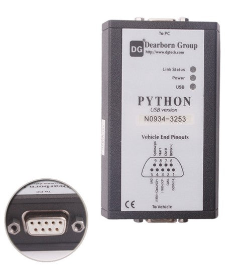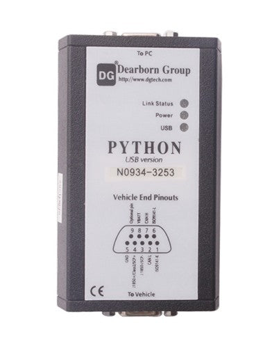 The Python includes a J2534 API for reprogramming and pass-through diagnostics. This versatile tool communicates with a PC by use of the PC's USB port.