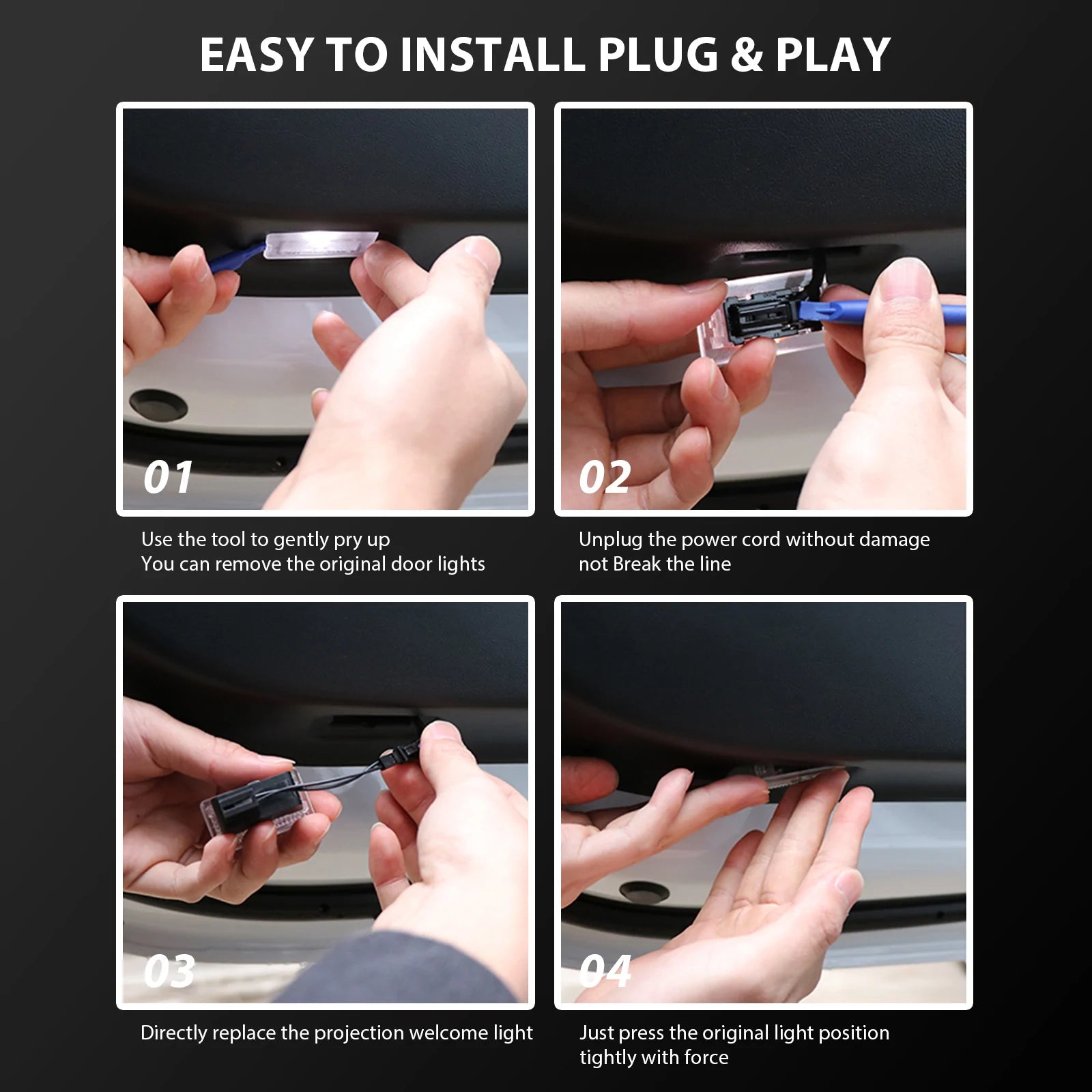 - Latest Design: Customized for Tesla Model Y Model 3 Model X Model S. Premium Lamp Head - Made of Cree LED Lamp Beads from Tesla with high light transmittance, higher brightness, energy saving, environmental protection and high efficiency sign projector car door