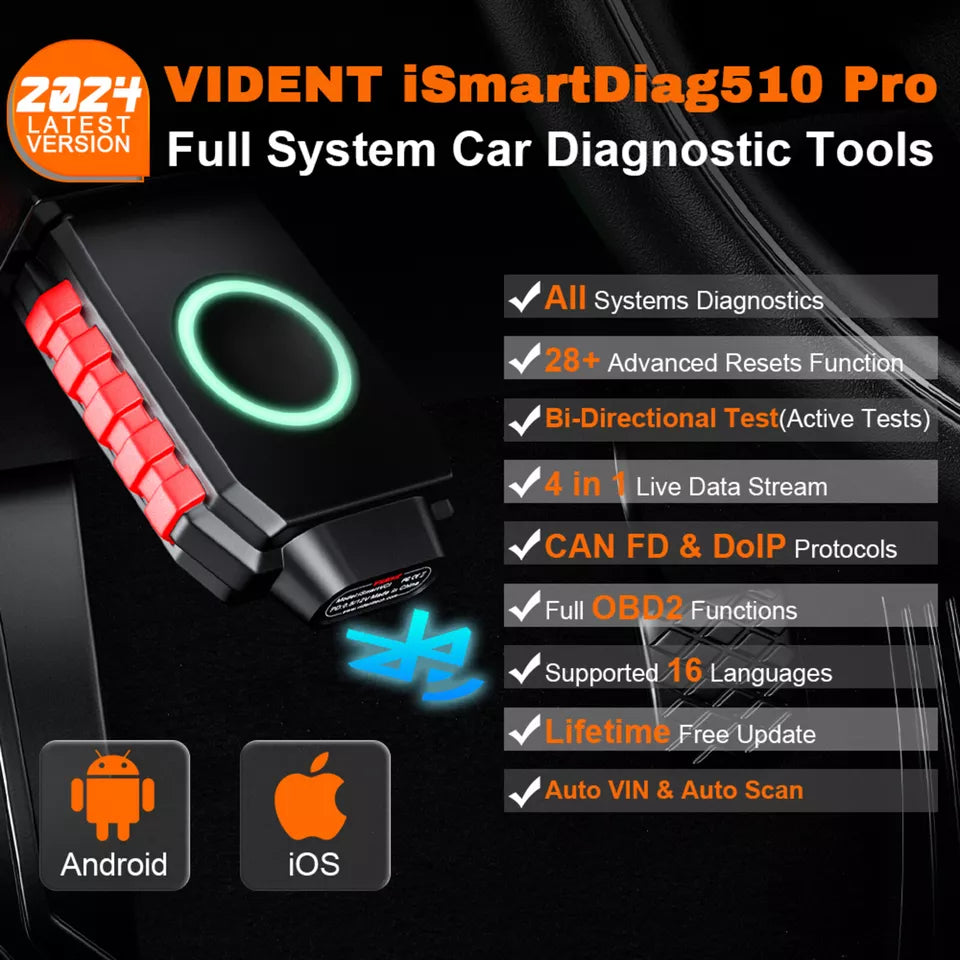 Vident iSmartDiag510/ 510 PRO BT OBD2 Scanner Full Diagnostic Tool With CAN FD&DIOP