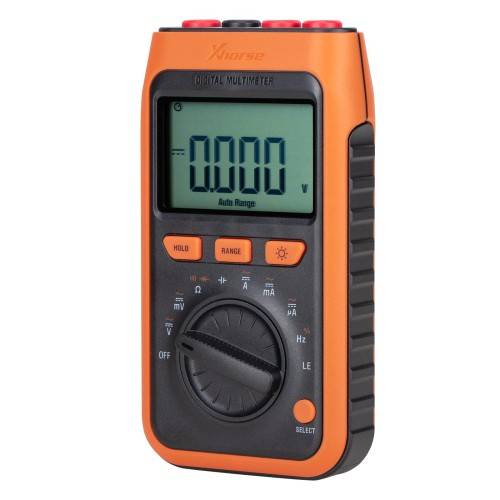 Xhorse Digital Multimeter can be used to measure AC/DC voltage, AC/DC current, resistance, capacitance, frequency, duty cycle, diode and continuity. And it can also effectively achieve useful functions such as data holding, range switching, screen backlight switching, function switching, automatic shutdown, etc.