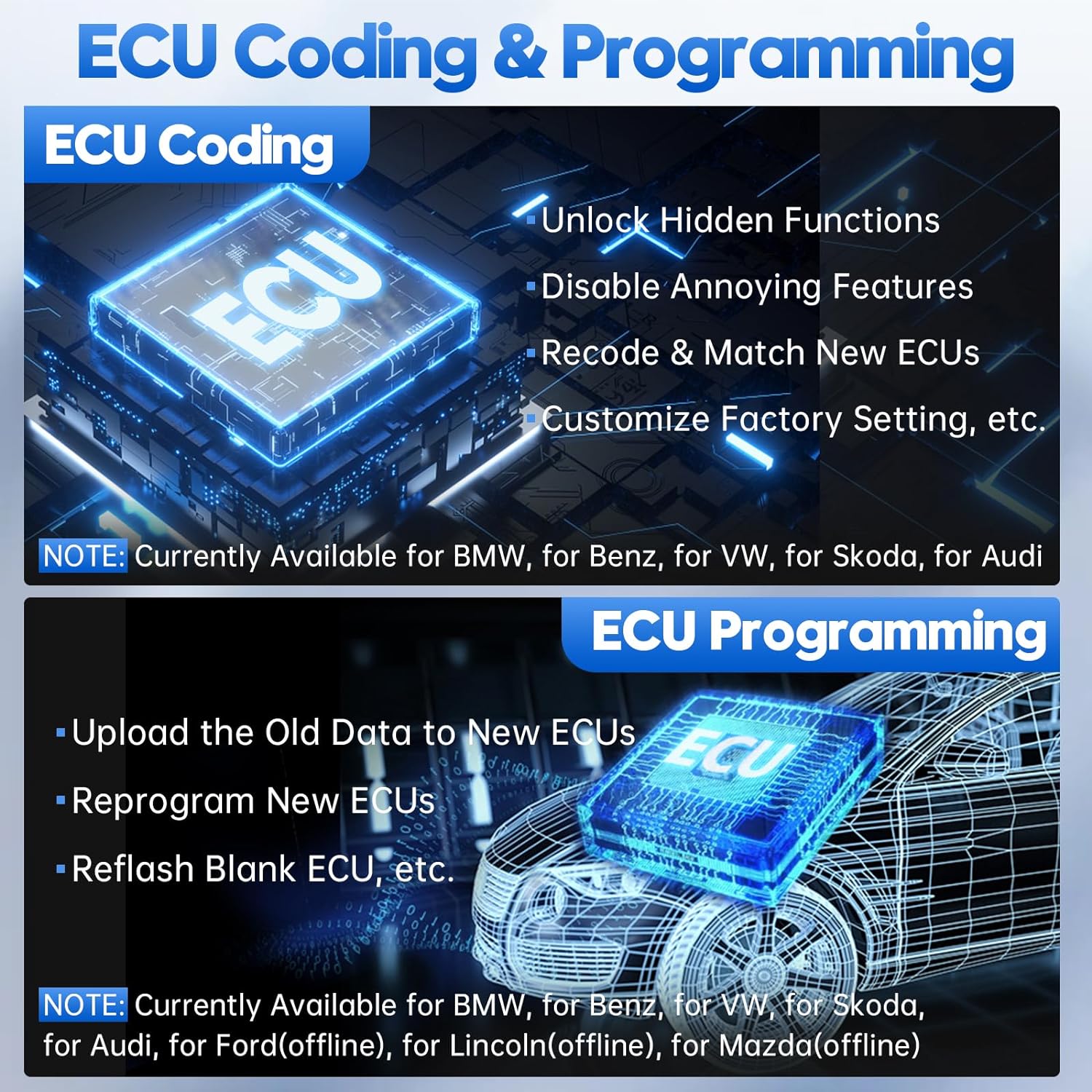 XTOOL D9 performs flash the hidden features, Personalized Settings, or disable the annoying functions, such as turn off the back up beep, turn the seat belt buzzer off. And reprogram the adaptive data for certain components after repairs or replacements.