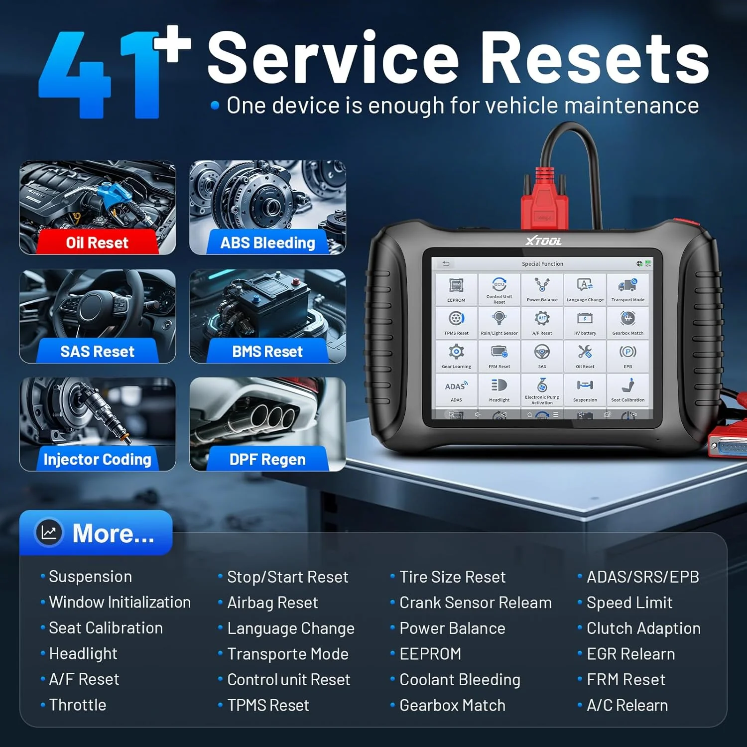 Oil reset, EPB reset, SAS calibration, BMS reset, transmission matching, ABS bleeding, injector coding, TPMS reset, throttle adaptation, DPF regeneration, and more.