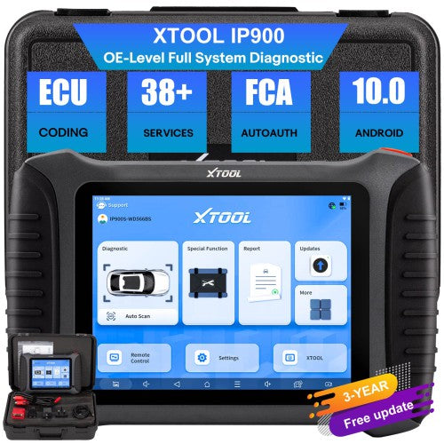 The XTOOL InPlus IP900 is the latest 2024 upgraded version of the XTOOL D7/D7S/IP819 obd2 scanner. XTOOL IP900 obd2 scanner diagnostic tool boasts more comprehensive features and functionalities for automotive technicians, including OE-level Full Systems Scanning, Bidirectional, 8-inch screen, Android10 OS, 4G RAM+64G ROM, 5000mAh/7.3V Battery (equal to 10000mAh/3.7V), FCA AutoAuth, 38+ Resets, VAG Guided Function, PMI, 3-Year Updates, 8 PIDS Live Data Stream Graphing, Data Playback/Record, etc, XTOOL IP900 is an indispensable car scanner diagnostic tool.